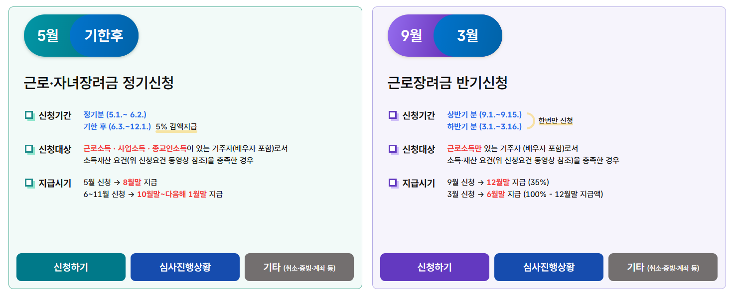 - 정기신청: 2025년 5월 1일~31일, 기한 후 신청: 6월 1일~12월 1일, 반기 신청: 상·하반기 각각 별도.